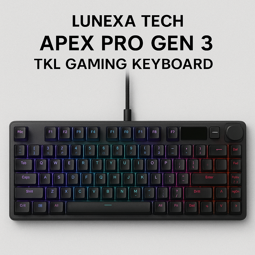 The Lunexa Tech Apex Pro Gen 3 TKL Gaming Keyboard delivers lightning-fast actuation, per-key RGB customization, and a compact tenkeyless design—built for competitive gamers who need speed and precision.