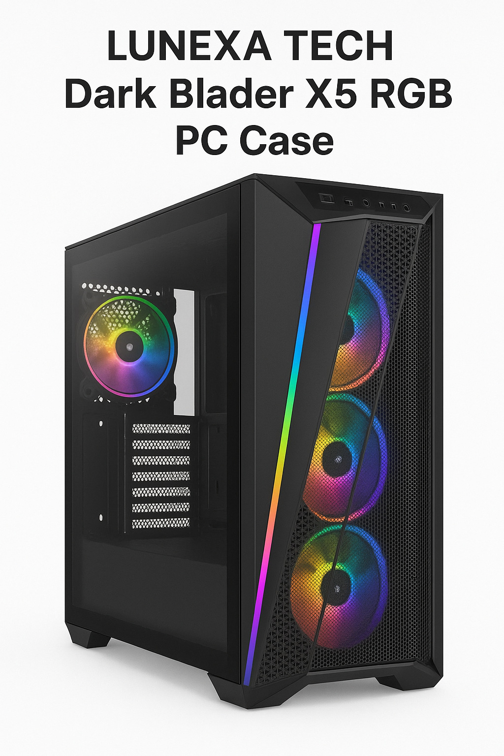 The Lunexa Tech Dark Blader X5 RGB PC Case combines bold aesthetics, superior airflow, and customizable RGB lighting—built for gamers and creators who want performance with style.