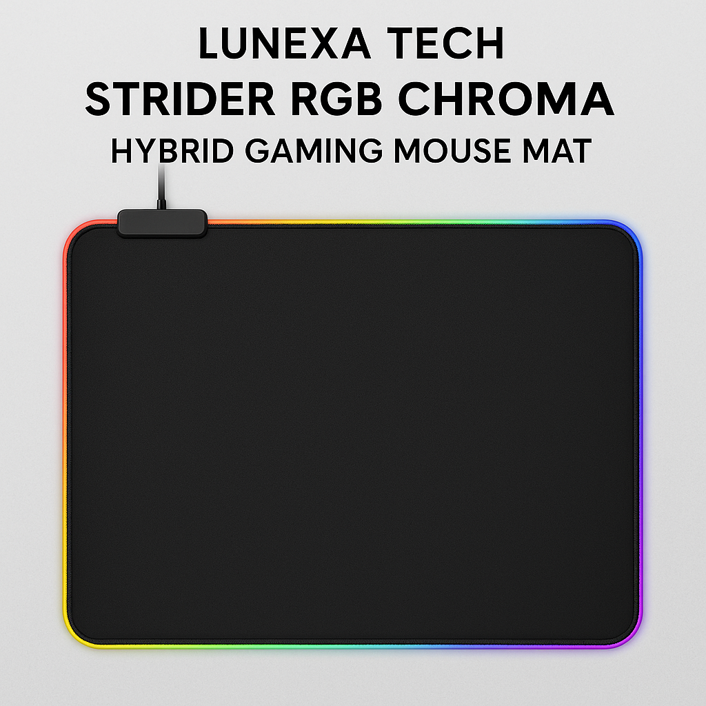 The Lunexa Tech Strider RGB Chroma Hybrid Gaming Mouse Mat combines the speed of a hard mat with the control of a soft mat, enhanced by vibrant RGB lighting for the ultimate gaming experience.